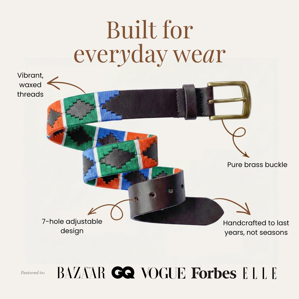 ICONIC & TIMELESS — Experience the authentic spirit of South America. Each belt is not merely made, but meticulously hand-woven by master artisans, a process that takes up to 8 hours per piece. We honor the centuries-old Gaucho tradition using premium, vibrant waxed threads to create our iconic Pampa patterns. This is not just an accessory; it is a piece of art that tells a story of unparalleled skill and dedication.